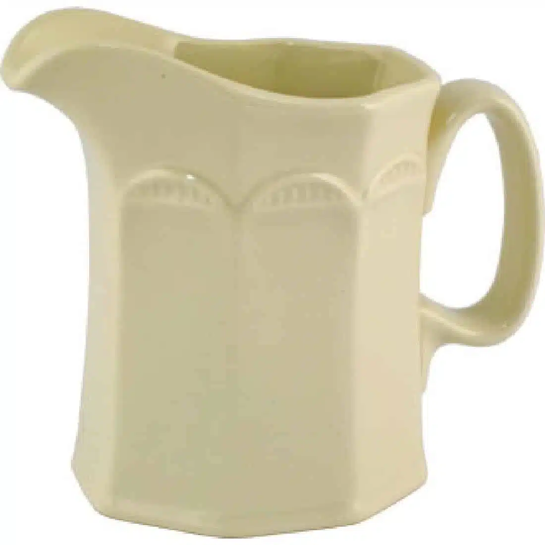 A distinctive hexagonal body and fine embossment gives this collection a timeless appeal, making it perfect for hotels, guest houses, cafes or tearooms requiring a sophisticated yet understated crockery solution. This 5oz jug is warm ivory in colour and made from a durable alumina vitrified body, making it able to withstand the rigours of daily use within the professional catering industry.