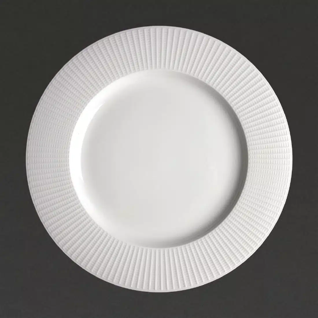 Serve generous main courses with style thanks to the subtle grid design of these dining plates’ lips. Perfect for adding texture to any course without distracting from the food, the intricate woven detailing of the edge of these plates is made using traditional techniques for a contemporary yet intriguing finish. These plates are resistant to thermal shocks, stains and are designed to withstand extensive commercial usage. Dishwasher, freezer, oven and microwave safe, these stylish plates suit a range of hotel and restaurant settings.