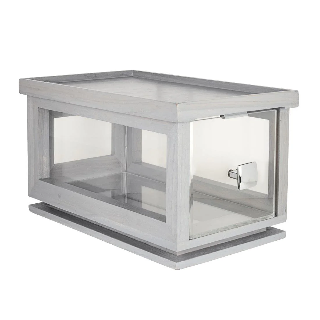 Manufactured from reclaimed teak wood, this grey wash bakery box is both environmentally friendly and cost effective, while its natural properties make it resistant to heat, light and moisture. The box is fitted with an acrylic drawer and is stackable for space efficiency.