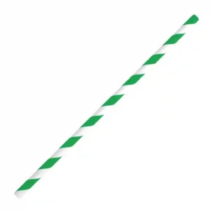 8" 6mm Bore Paper Straws (Green & White Striped)