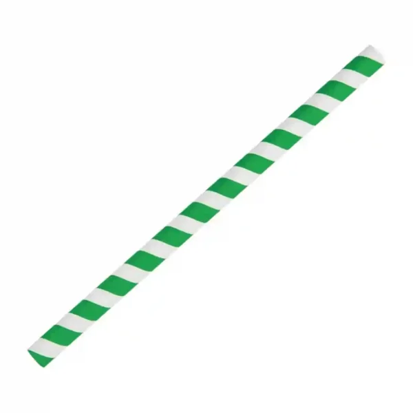 Bring sustainability to your drinks service with this pack of 250 x green-striped Fiesta Green compostable paper smoothie straws. Made with sustainably sourced paper and natural glues and inks, these straws are kinder to Earth’s natural resources and are commercially compostable within 12 weeks after use. Switching to these straws will therefore help you to minimise your environmental impact, divert waste away from landfill and meet customer demand for greener catering disposables.
