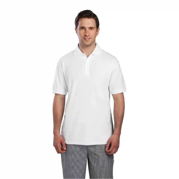 Hardwearing polycotton ring spun pique with tapered neck, reinforced shoulders, ribbed cuffs on sleeves and self coloured buttons. Suitable for commercial laundering.