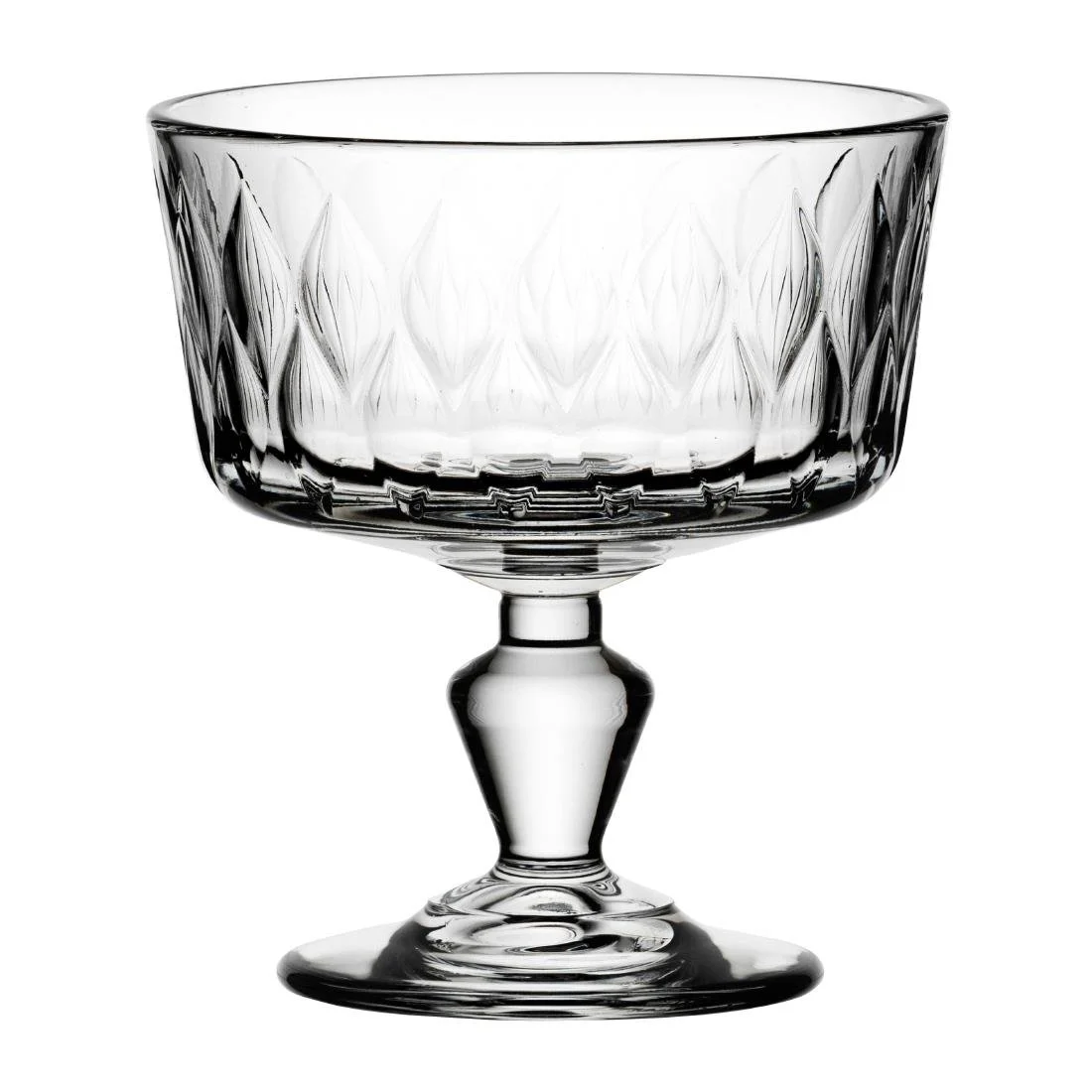 Supplied in a pack of 24, these Pasabahce Leafy ice cream glasses are ideal for showcasing desserts in bars, restaurants, and busy hospitality environments alike.