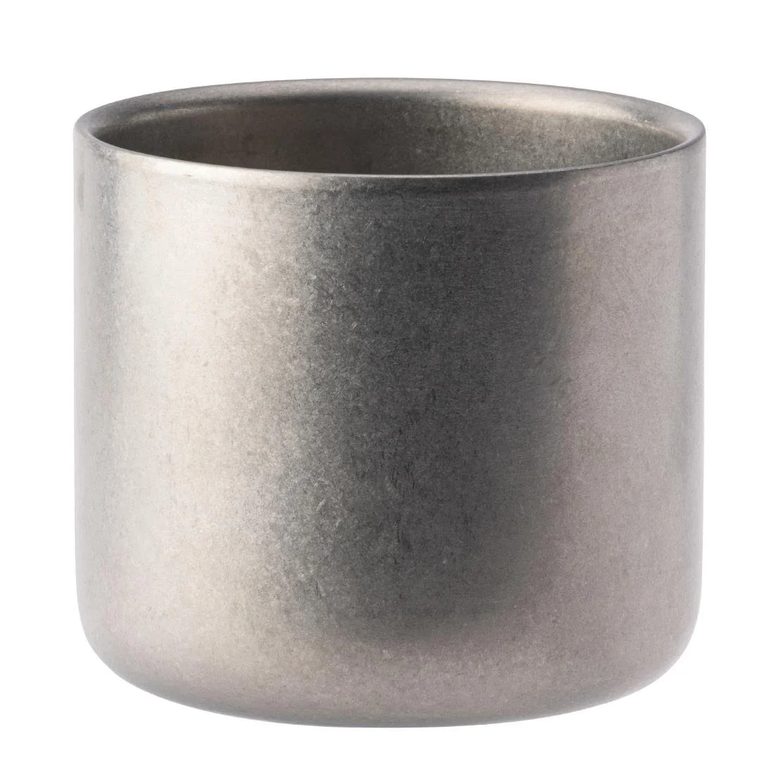 The rumbled steel finish delivers a matte, industrial aesthetic, serving a practical purpose by effectively concealing the minor scratches and fingerprints often sustained during high-volume service. This ensures the cups maintain a professional appearance with minimal effort.