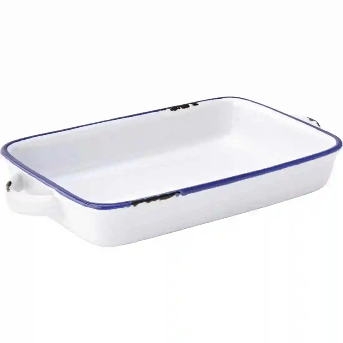 The Avebury Blue collection of decorated stoneware is instantly recognisable with the classic blue rimmed enamel tableware. Take this retro look to your table to add authenticity and a rustic feel to your food.