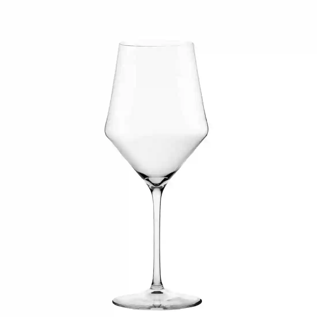 Part of the Edge crystal collection by Rona, these red wine glasses have a lightweight one-piece construction, featuring contemporary angular shapes and laser treated chip-resistant rims.